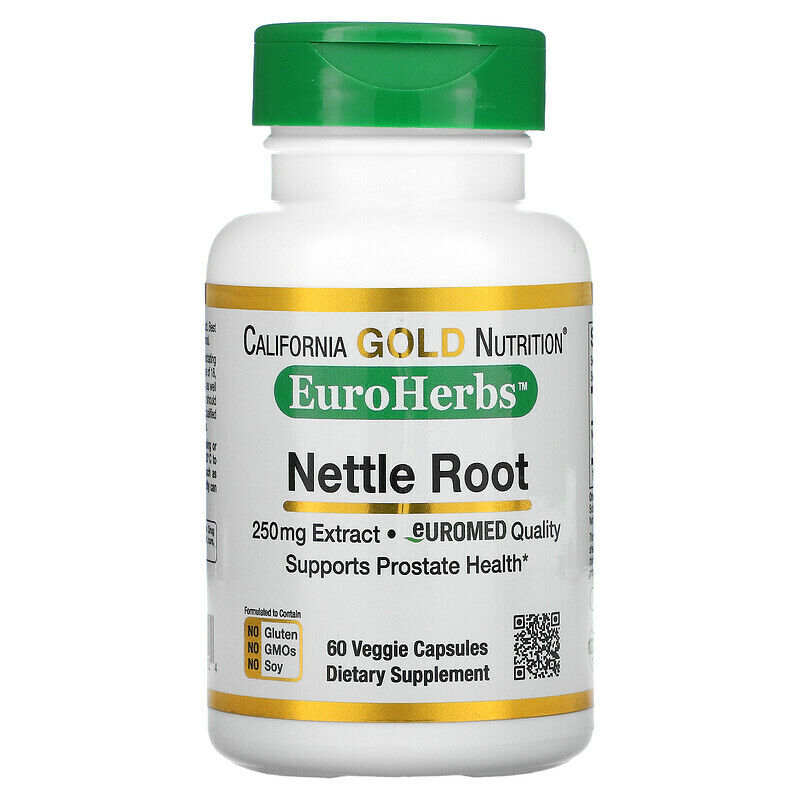 California Gold Nutrition EuroHerbs Nettle Root Extract Veg 250mg 60 caps NEW