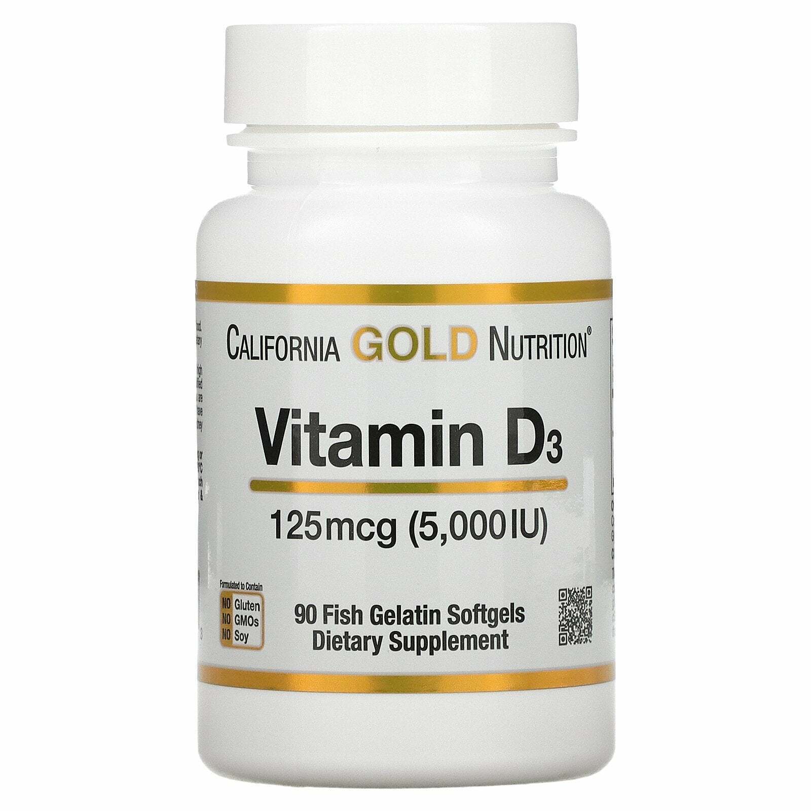California Gold Nutrition Vitamin D3, 125 mcg (5,000 IU) features Vitamin D3 as Cholecalciferol from Lanolin in Fish Gelatin Softgels.
