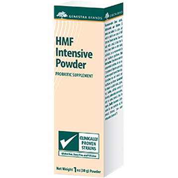 • Provides 25 billion CFU per day of two strains of Lactobacillus acidophilus, Bifidobacterium bifidum, and Bifidobacterium animalis subsp. lactisHMF Intensive Powder provides four strains of proprietary human-sourced probiotics that promote intestinal health in children, adolescents, and adults. Lactobacilli and Bifidobacteria are the most commonly used probiotics. They effectively colonize the intestines and promote healthy levels of intestinal bacteria into circulation. Probiotics reinforce the epithelial barrier and mediate intestinal permeability by controlling the integrity of tight junctions. Although the microflora composition in the gut is relatively steady, it can be altered by diet, stress, age and medication use. Probiotics promote the presence of beneficial bacteria to support normal intestinal function. In a randomized, placebo-controlled trial involving 155 adults, daily intake of a probiotic supplement providing 25 billion CFU (containing two strains each of Lactobacillus acidophilus and Bifidobacterium) for 21 days significantly and positively affected the intestinal microbiota.*
