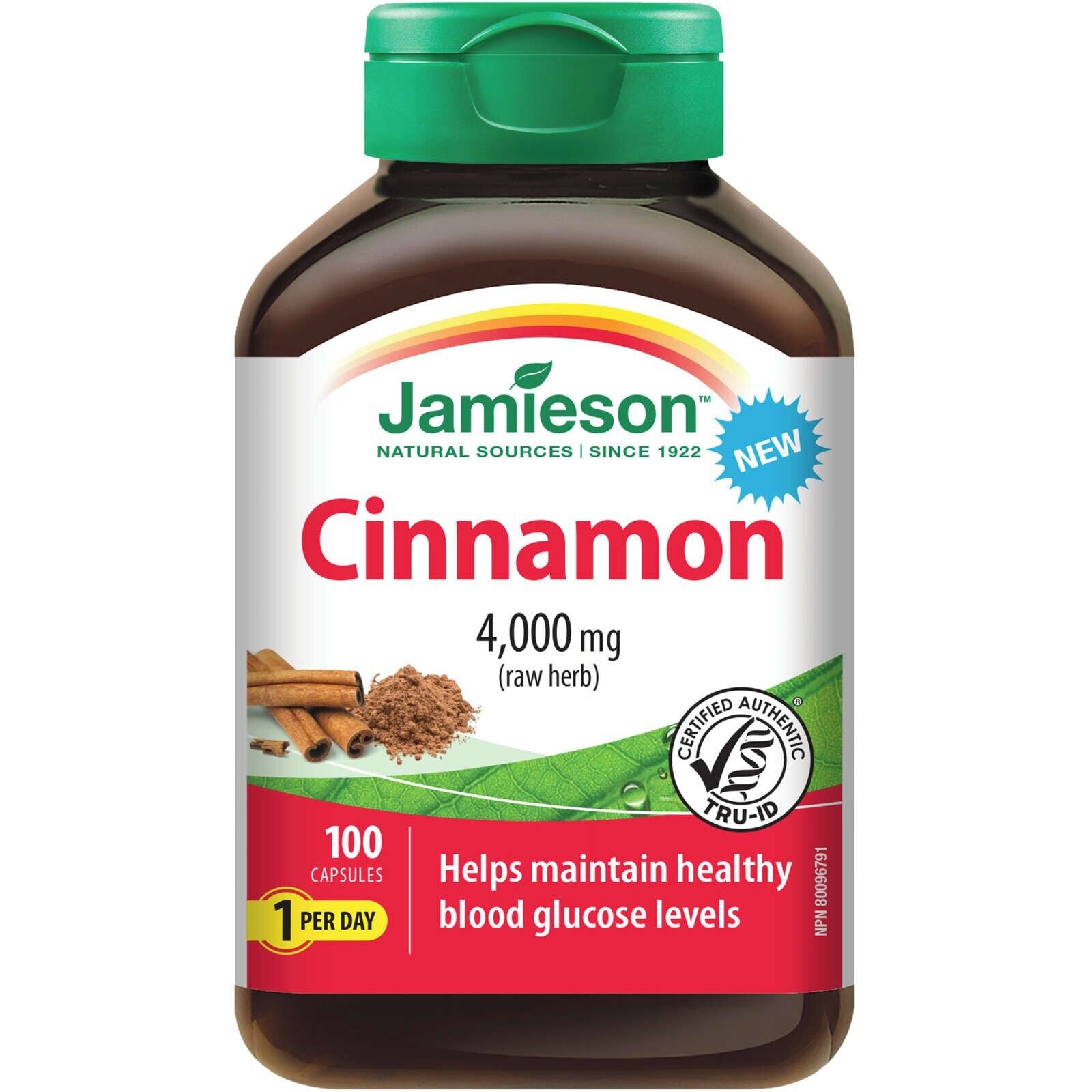 Jamieson Cinnamon provides you with the raw herb equivalent of 4,000 mg of Cinnamon per capsule. Cinnamon is a herbal ingredient that helps to support the maintenance of healthy blood glucose levels. Cinnamon is also an antioxidant source for the maintenance of good health. Product information is provided by the product vendor. This content is a summary for informational purposes only and does not have all possible information about this product. It should not be used as a substitute for advice from health care professionals, as this information alone does not assure that this product is safe, effective, or appropriate for you. For more detailed information on this product, including reported and possible side effects and contraindications, refer to the manufacturer's monograph, or speak with a health care provider.