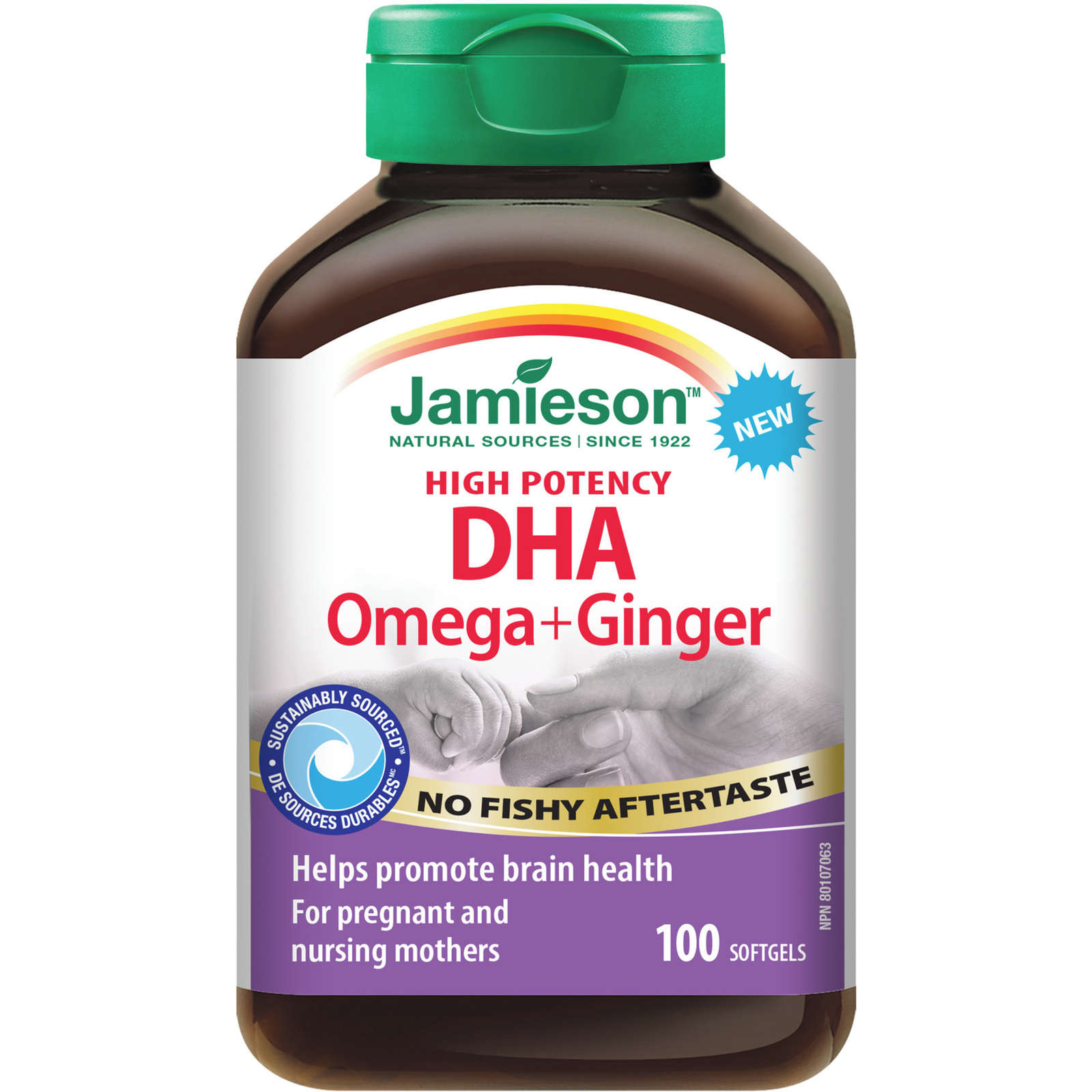 Jamieson High Potency DHA Omega + Ginger is formulated to support expecting mothers by combining high potency DHA and ginger. DHA is an omega-3 essential fatty acid that provides support for the development of their baby's brain and eyes. Plus, this premium fish oil supplement leaves no fishy aftertaste or burp back!Jamieson High Potency DHA Omega + Ginger can be taken along with any Jamieson Prenatal multivitamin. Product information is provided by the product vendor. This content is a summary for informational purposes only and does not have all possible information about this product. It should not be used as a substitute for advice from health care professionals, as this information alone does not assure that this product is safe, effective, or appropriate for you. For more detailed information on this product, including reported and possible side effects and contraindications, refer to the manufacturer's monograph, or speak with a health care provider.