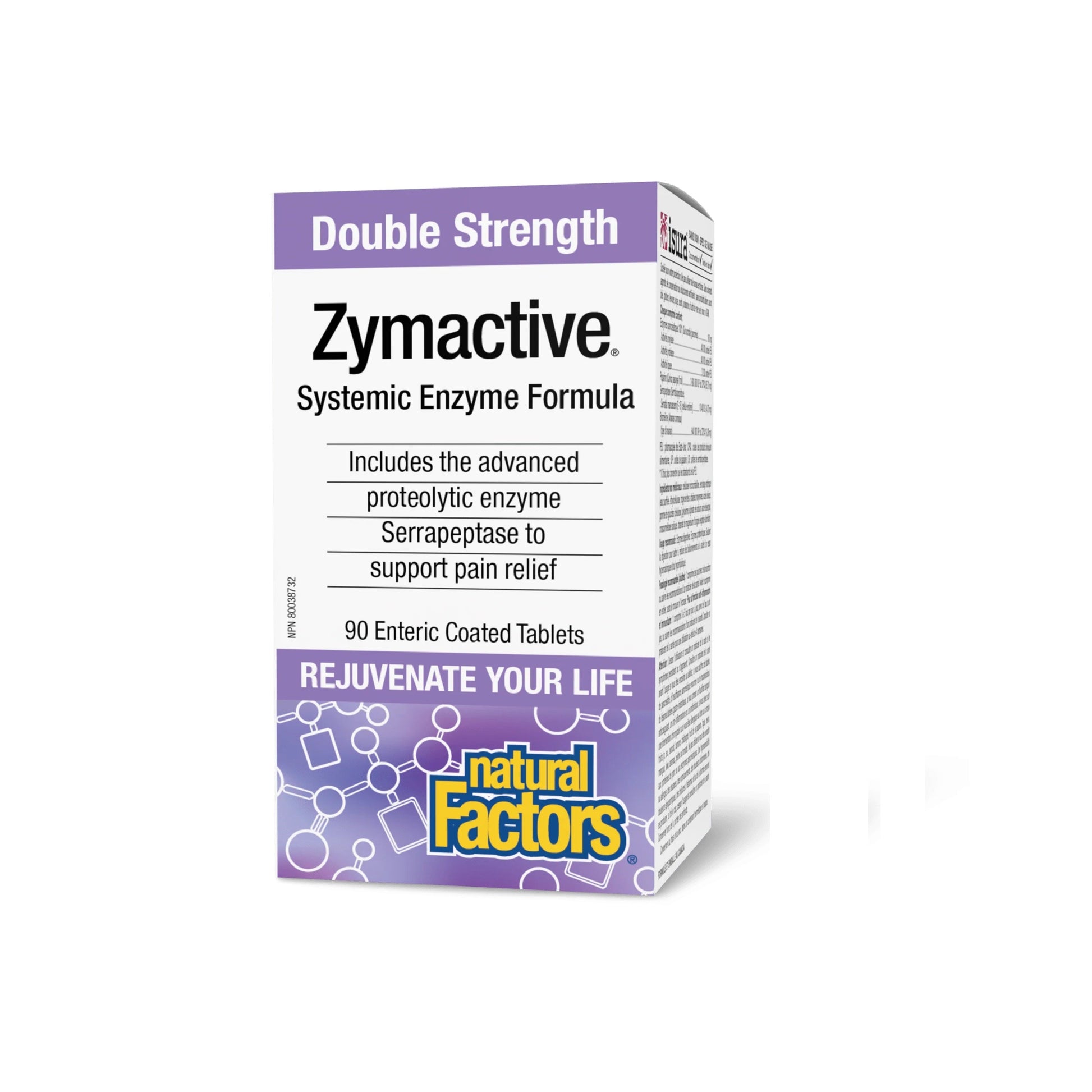 Natural Factors Double Strength Zymactive is a systemic enzyme formula with more than four times the potency of other proteolytic enzyme supplements. The unique combination of proteolytic enzymes breaks down proteins that cause inflammation and pain.* The tablets are enteric coated to protect the enzymes from stomach acid during digestion.*