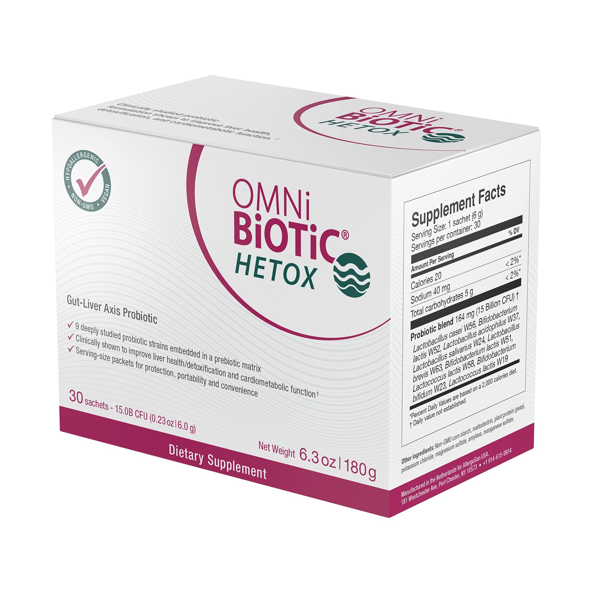 - GUT-LIVER AXIS SUPPORT: Imbalances in the gut microbiome can result in damage to the gut barrier, increased toxin load, and reduced liver function. The OMNi-BiOTiC HETOX formulation is designed to help rebalance gut health, reduce circulating toxins, and provide effective liver support.