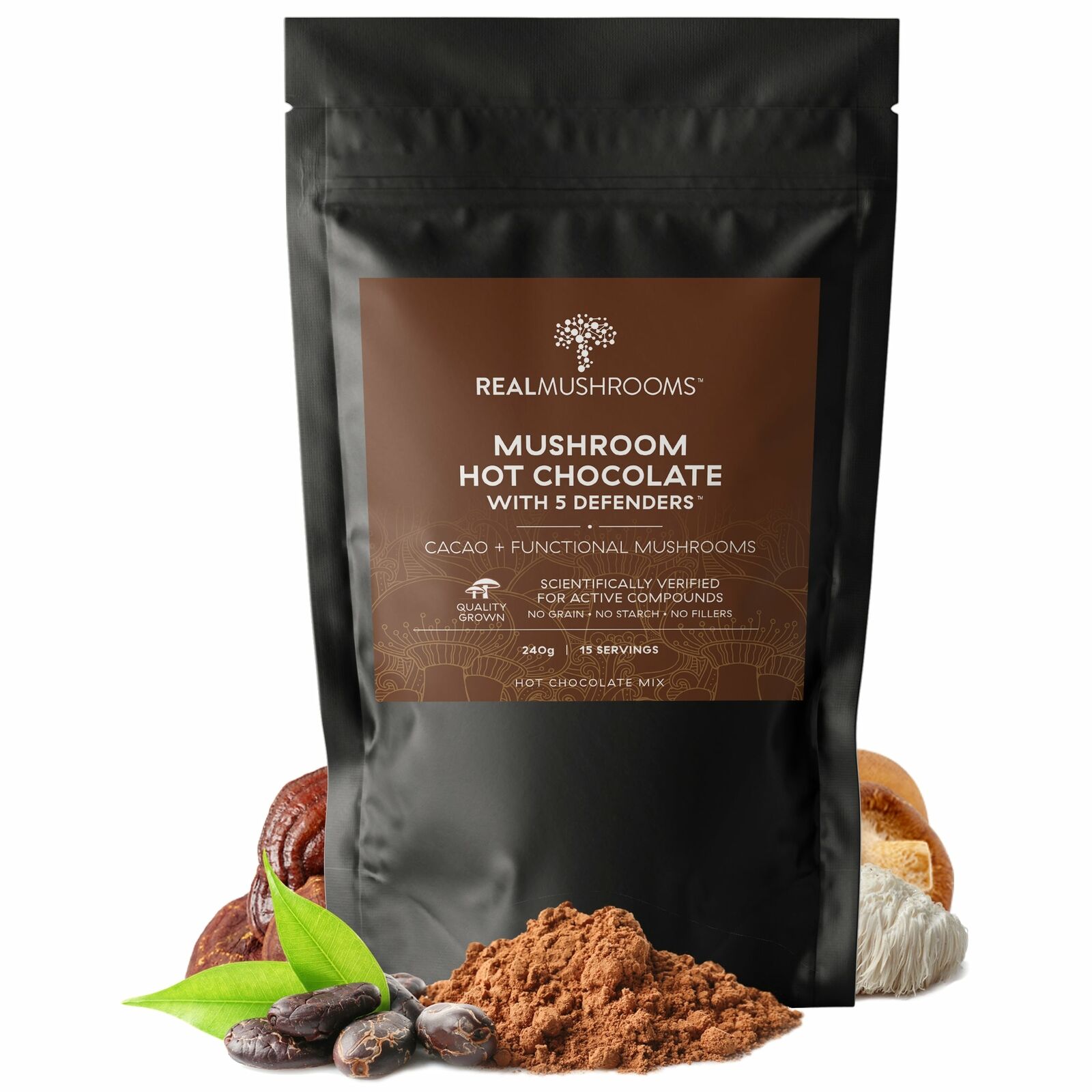 Real Mushrooms Organic Hot Chocolate Mix Heirloom Cacao Pure Vegan 240g NEW